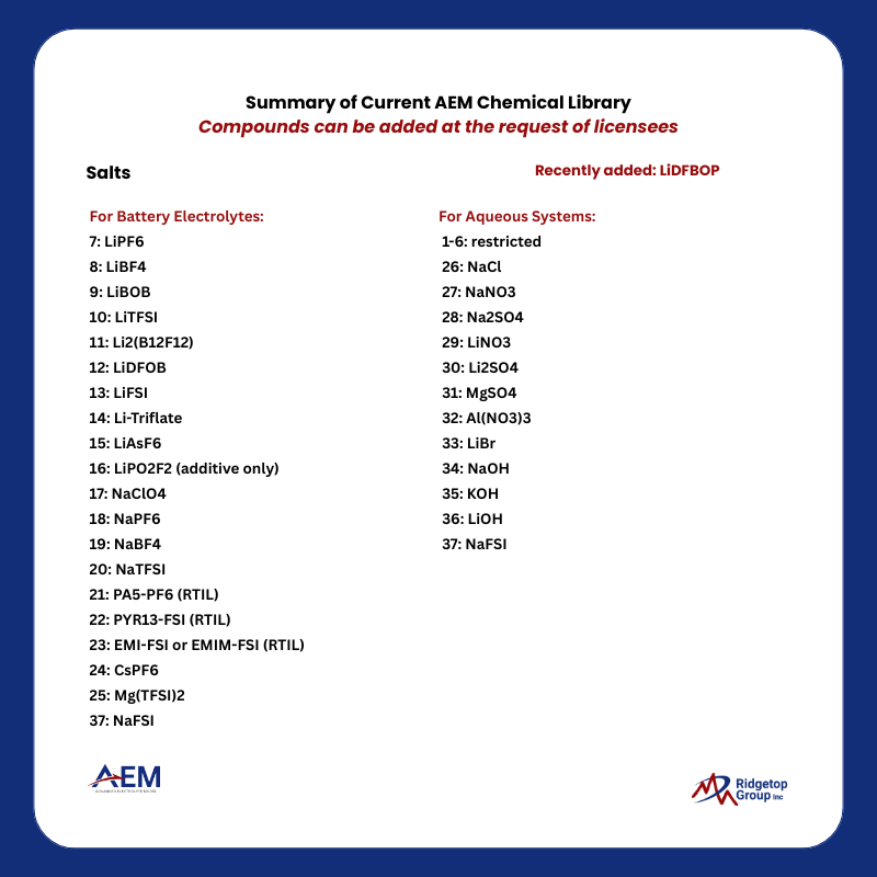 The Advanced Electrolyte Model (AEM), is a groundbreaking molecular simulation tool designed to transform electrolyte chemistry optimization. Rooted in a robust theoretical framework, it serves as a virtual laboratory, offering researchers an extensive toolkit for exploring and fine-tuning genome-level electrolyte properties.